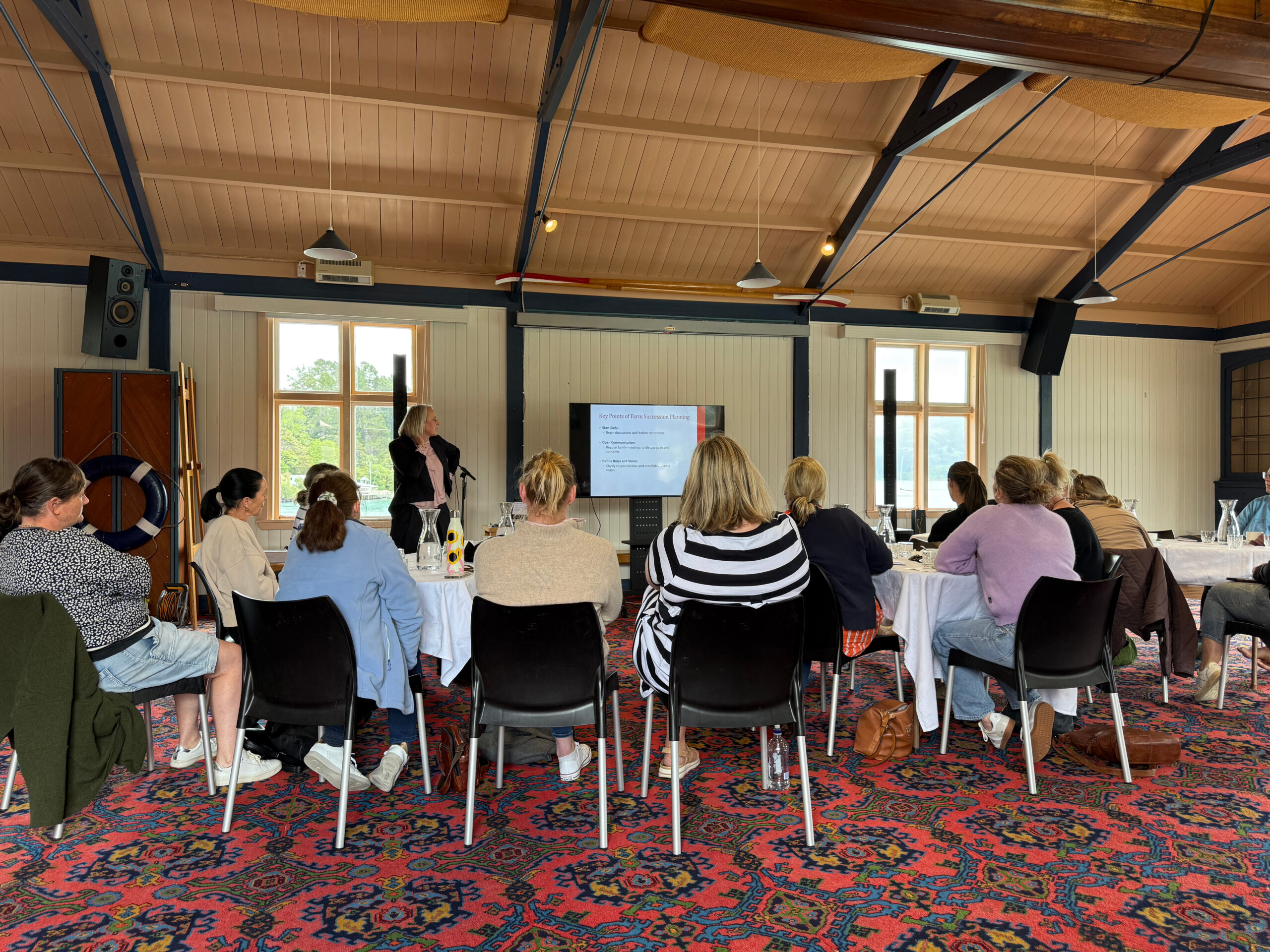 The programme for Friday began with a gentle yoga session on the beach, thanks to Nadine Hickman, setting a tone of wellness and mindfulness. We then dove into a series of engaging workshops and discussions starting with a presentation from NZAB on understanding the banking industry and how farm equity and debt can be better managed. This led perfectly into a presentation on farm succession from Emily Flaszynski from Mortlock McCormack Law which was followed up by Kate Steadman, a clinical psychologist from Manawatu, providing some practical and actionable advice on mental wellness.