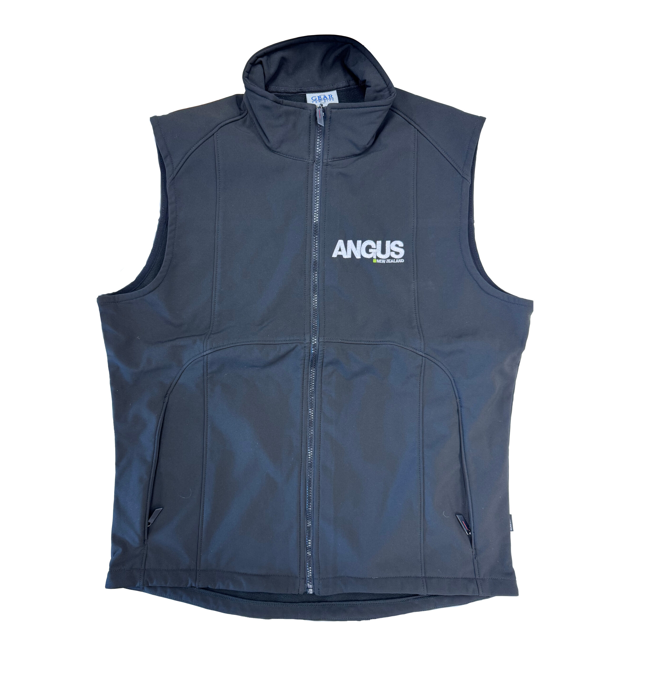 Soft shell polyester black, shower proof vest, smart, warm and semi formal.